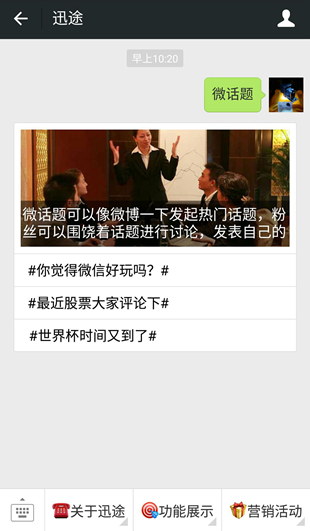 微话题功能可以在公众号内实现热门话题讨论区,粉丝可以发起话题并进行讨论,公众号商家也可以在后台对话题进行管理审核。
