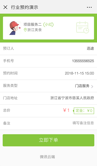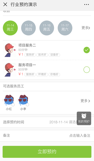 全新上线行业商家客户预约方案,行业预约功能主要适用美容、健身、酒吧、ktv、培训、餐饮、娱乐等服务性行业,根据其行业特点而开发的、更具有针对性的在线预约功能。在线创建预约项目(服务或套餐)、预约时间段、预付定金等行业相关服务,可以对员工以及项目做智能化计划排班管理,排班管理系统让预约服务更加人性化以及智能化;用户则可以在线自主预约商家的服务,并进行线上支付以及随时查看和管理服务订单的状态;系统还集成了多个模板消息提醒,订单预约成功及取消订单都会有详细的模板消息通知用户。