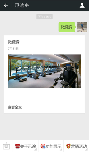 微健身功能可以通过公众号实现健身行业的相关内容介绍与展示,您可以通过微信扫描以下二维码来体验免费公众号第三方微健身功能