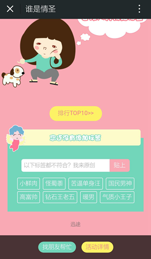 谁是情圣是分享助力类魅力大比拼活动,无论你是男生女生还是人妖都可以参与哦,谁才能夺得情圣桂冠?想知道你好友圈好友们对你有何印象?你的魅力是否无人能挡?