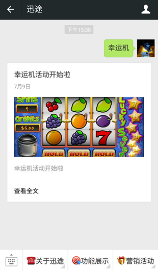 您可以通过微信扫描以下二维码来体验免费公众号营销服务功能幸运水果机功能