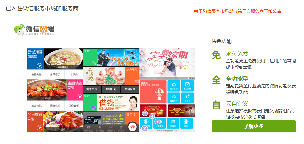 微信云端经过重重安全性检测和稳定性、易用性考验成功入驻微信云平台。我们将尽我们最大的努力完善现有功能和模块,逐步增加更多实用性功能,并坚持功能模块永久免费使用的原则为微信商家提供全方位优质服务。
