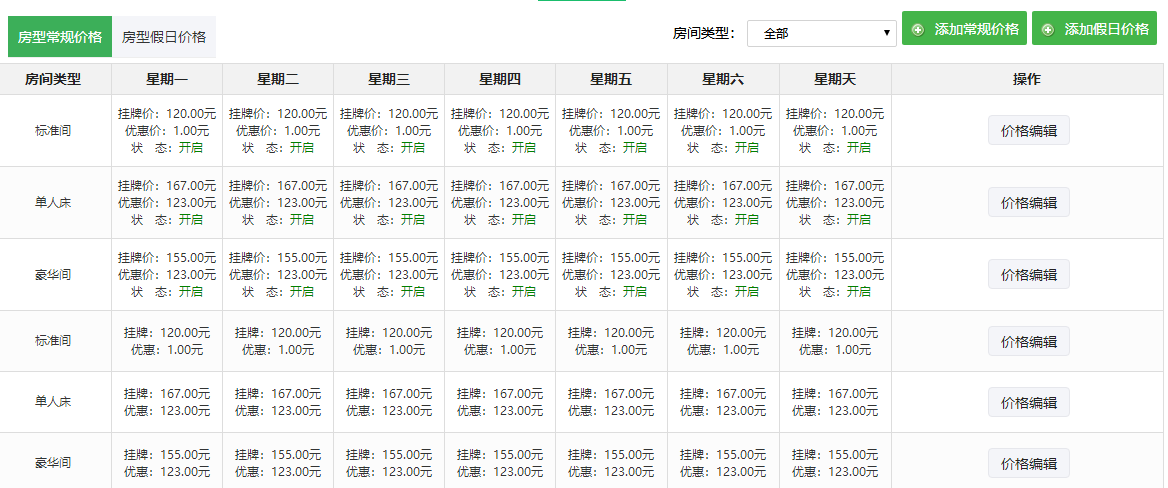 我们还对管理后台订单筛查进行了完善和改进,节假日价格管理也进行了优化!