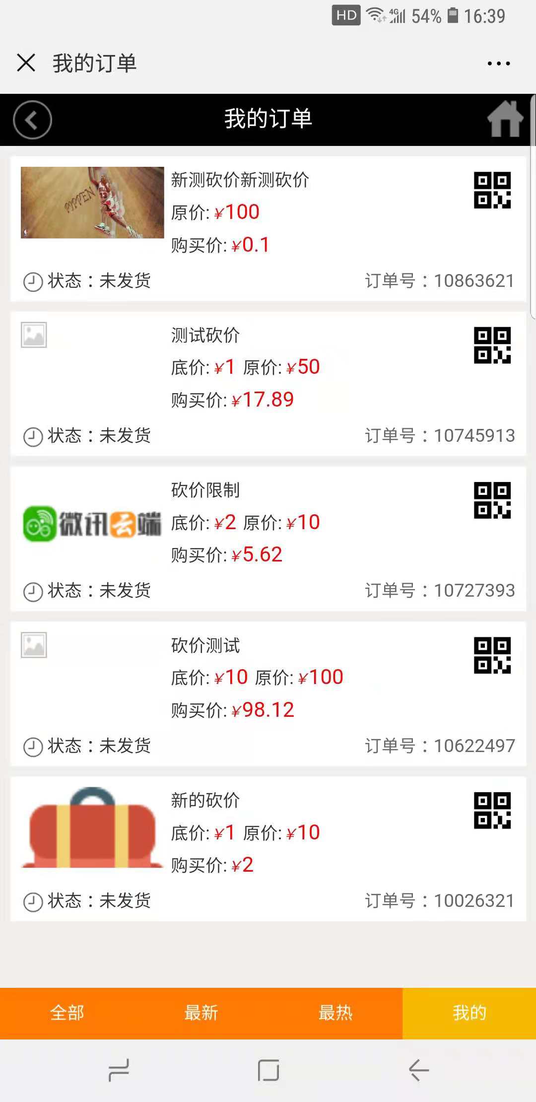 疯狂砍价功能新增手机端商家扫码核销订单的功能!