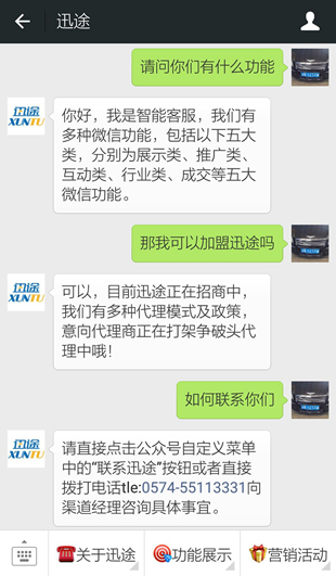 智能客服功能可以实现摸拟人工对话,公众号商家提交预设好问题,系统便会自动回复对应的内容给粉丝